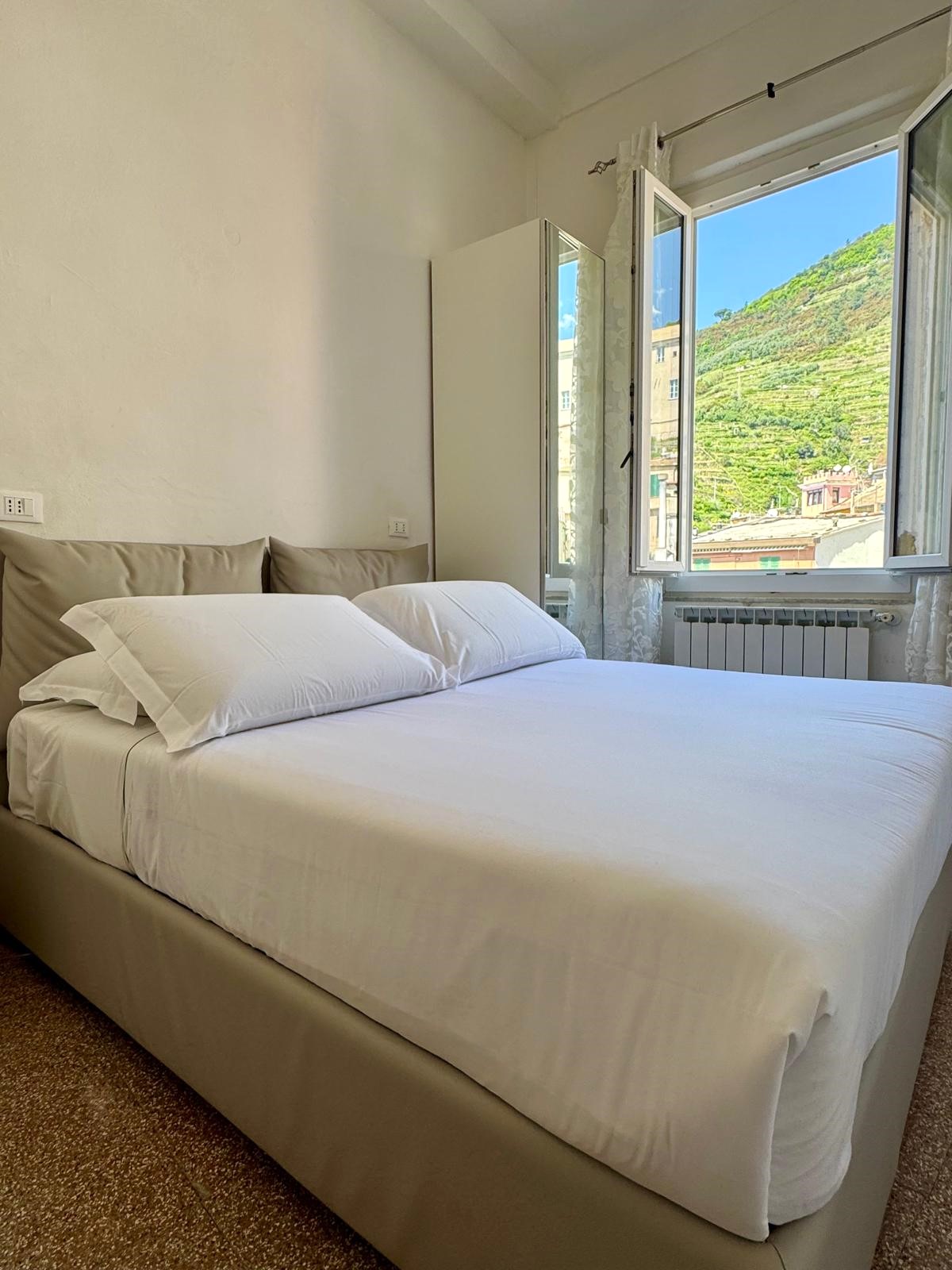 Le due camere hanno l'affaccio sul paese. Ognuna ha il letto matrimoniale e grandi finestre con zanzariere.